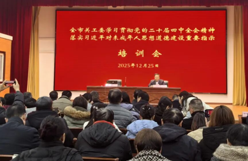 12月25日,蚌埠市关工委“学习贯彻党的二十届四中全会精神,落实习近平总书记对未成年人思想道德建设重要指示”专题培训会在市委老干部局报告厅举行。市关工委领导班子全体成员,市辖县(区)及市教育局关工委领导班子成员,各区乡(镇)、街道关工委主任,市、区老年大学关工委主任及市“夕阳红”报告团成员共120余人参加培训。