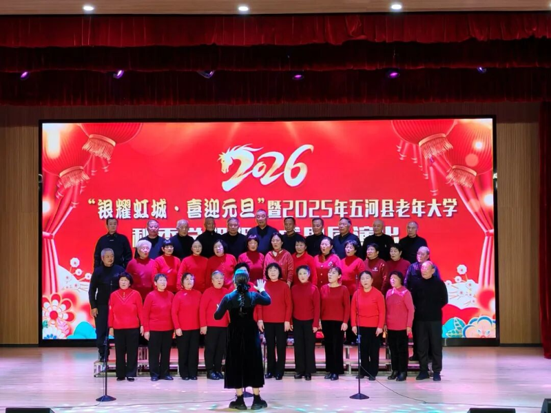 12月26日下午,五河县老年大学举办“银耀虹城 喜迎元旦”学习成果汇报演出。县委常委、组织部部长赵入德出席并致辞。老年大学校委会成员、部分实职县级退休干部与老年大学学员一同观看演出。演出在激昂的鼓舞《站台》中拉开帷幕。31个节目轮番登场、亮点纷呈。舞蹈《故乡情》演绎出水乡的柔美;花样功夫扇表演《精忠报国》行云流水、刚柔相济;旗袍秀《花开中国》身姿挺拔、典雅端庄 ;葫芦丝齐奏《高山青》旋律优美、清新悦耳;腰鼓《拥军秧歌》欢快喜庆······最后,演出在大合唱《南泥湾》《志愿军赞歌》中圆满落幕。此次汇报演出不仅是一次教学成果的集中展示,更是老年人热爱生活、乐观向上晚年生活的生动体现,诠释了“老有所学、老有所乐、老有所为”的深刻内涵,展现了新时代老年人良好的精神风貌与艺术追求。