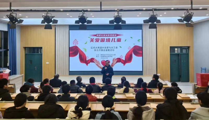 1月15日上午,经开区关工委联合区机关离退休干部党支部在蚌埠临港新程实验学校开展“情暖校园·关爱同行”送温暖活动,为30名困境学生送上棉被、学习用品等慰问物资。
