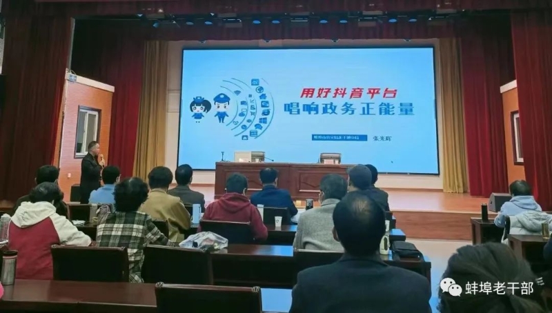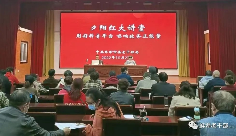 10月27日下午,“用好抖音平台 唱响政务正能量”专题讲座在市委老干部局“夕阳红”大讲堂举办,市公安局龙子湖分局政工室二级警长张光辉受邀进行专题辅导,市委老干部局全体干部职工及部分市直单位离退休老同志40余人参加,市委老干部副局长朱海燕主持活动。